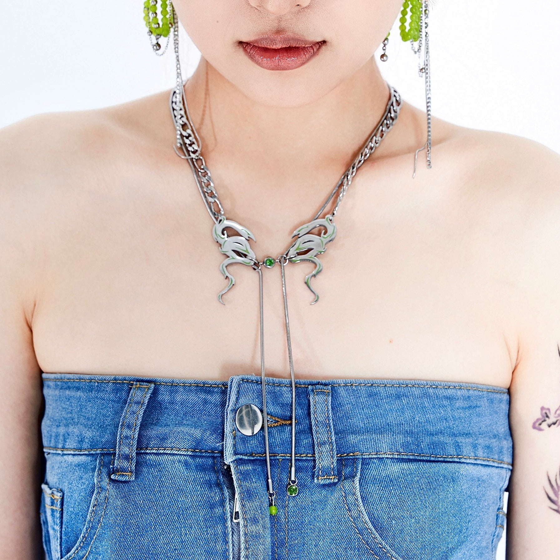 Fervooor Typical Millennial Green Snake necklace
