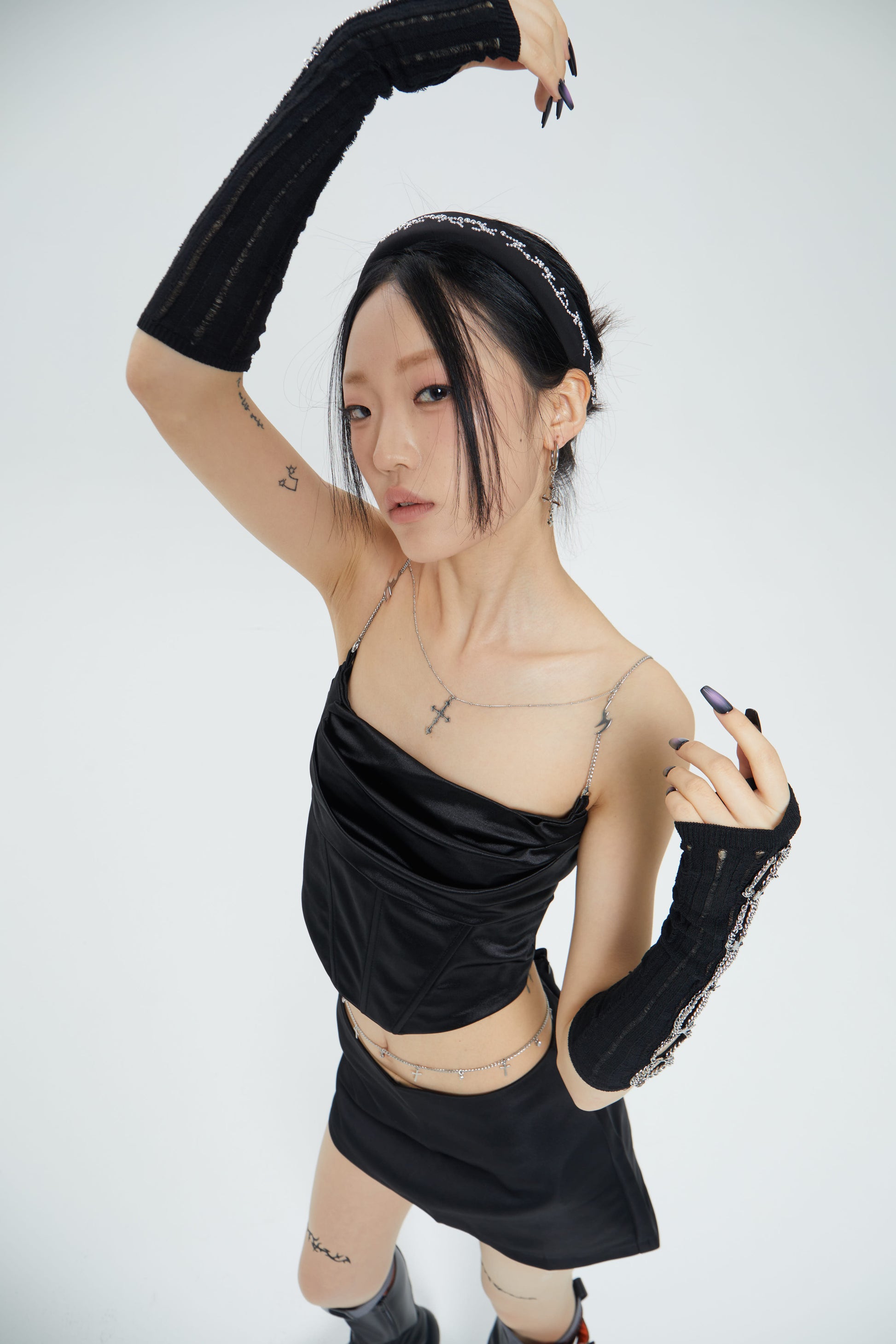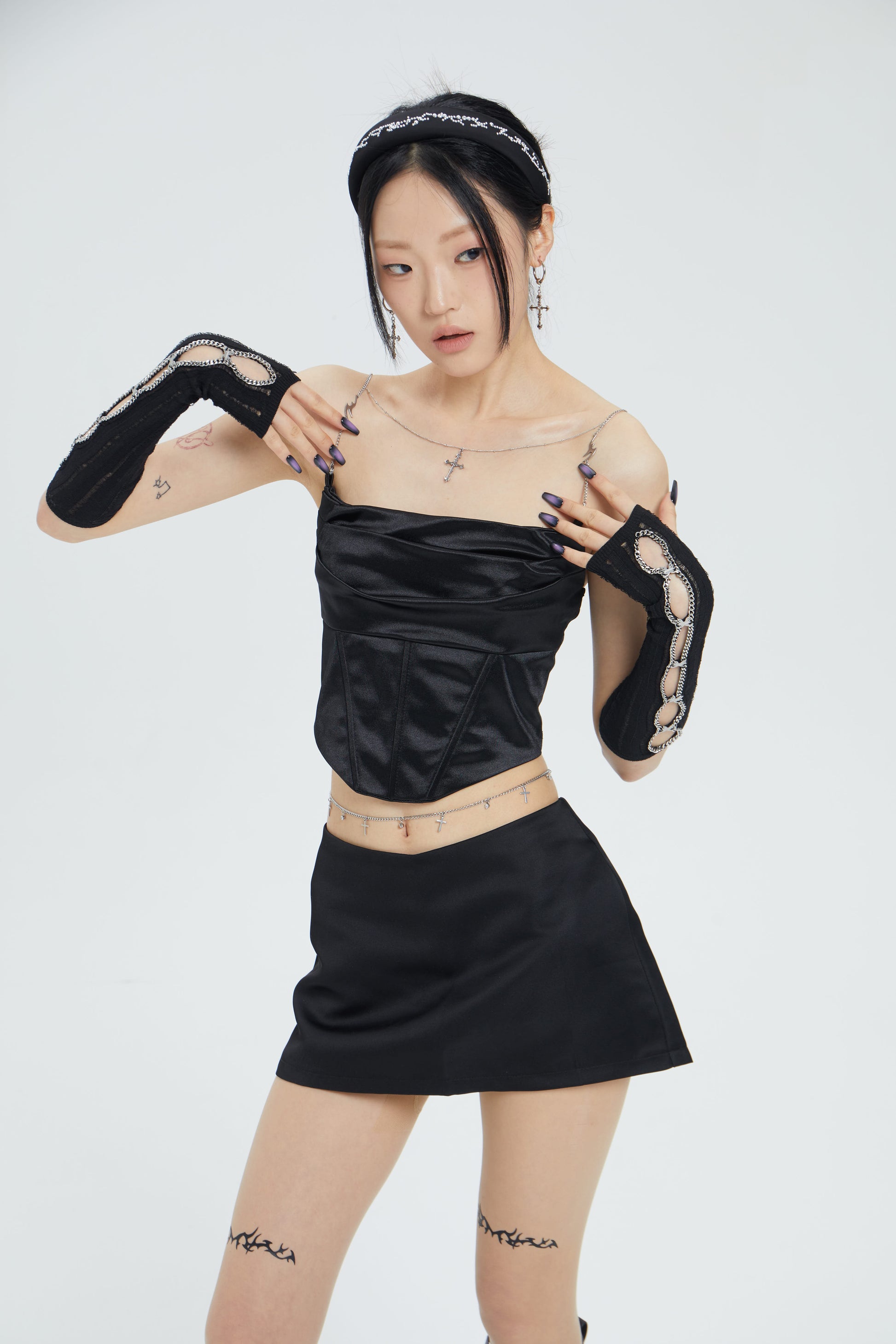 Fervooor chrome heart lily crucifix detachable shoulder chain